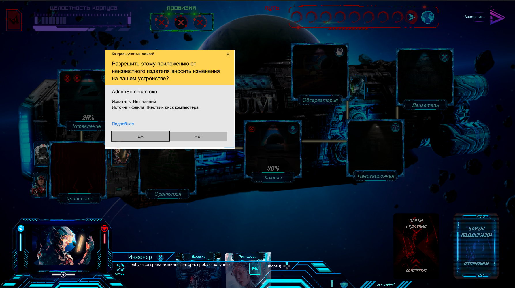 Team Developed a plan: When Somnium is close enough to Earth, you need to stop the engines, lock yourself in the Special Storage compartment and disconnect it from the main ship. Leave the artifact on the ship, and when we fly to a safe distance, we’ll blow it up.