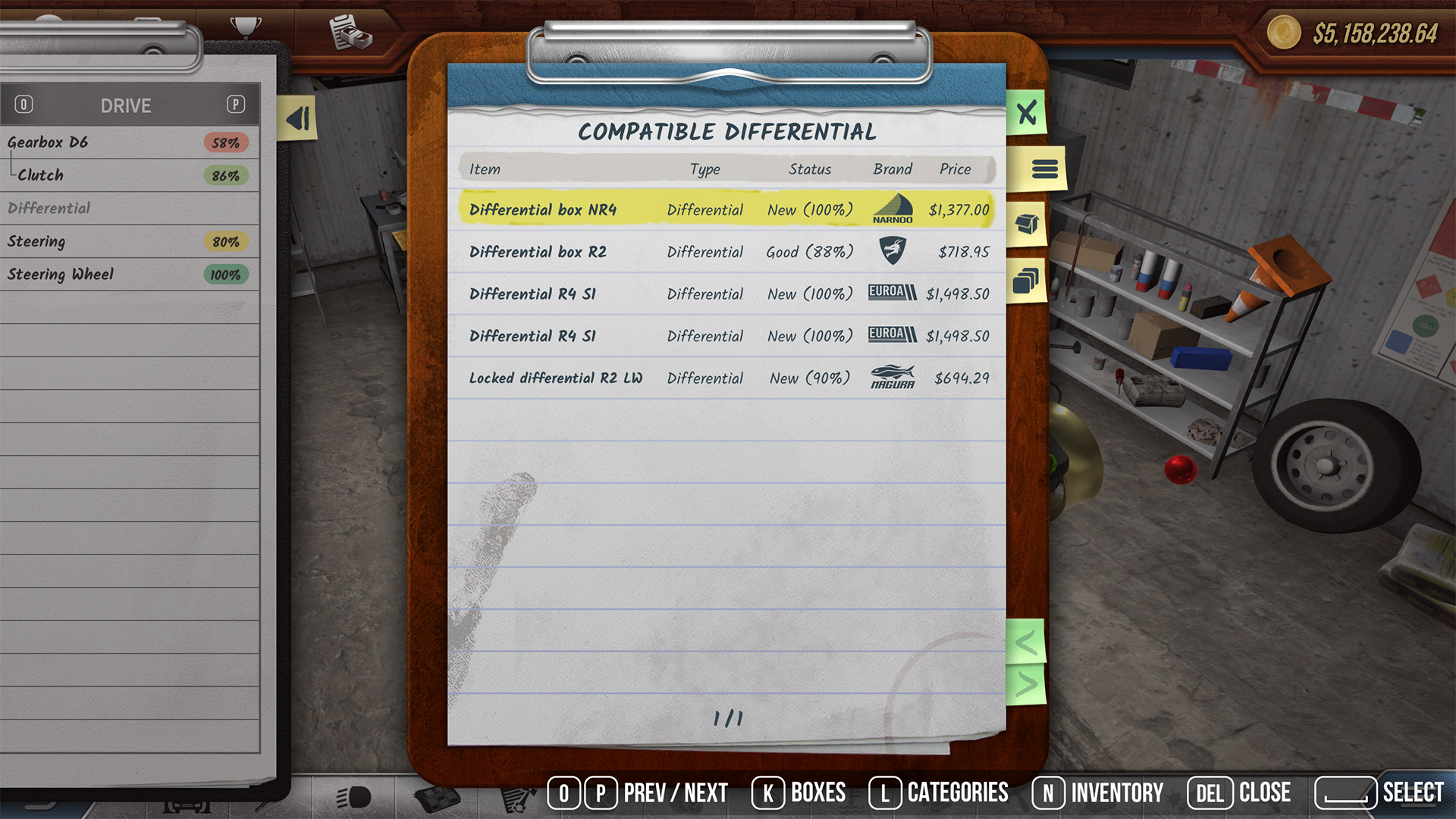 We have made the work in the garage easier by replacing the old and ugly parts selector with a new list view. It is much more elegant and fits into the game well, but most importantly, it will make it easier to use, especially if you are using a controller or keyboard to work in the garage.