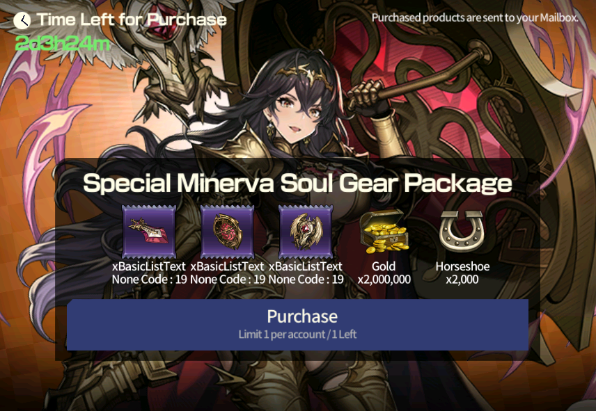 1. Special Minerva Soul Gear Package - 1 per account July 11, 2024 (Thu) after maintenance - August 8 (Thu), 13:00