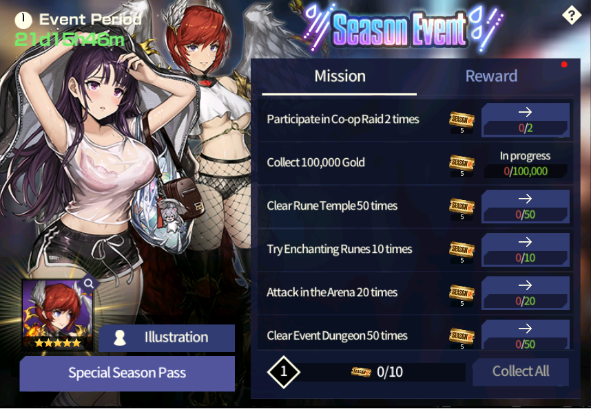 1. Season Pass - 1 per account July 11, 2024 (Thu) after maintenance - August 8 (Thu), 13:00 Earn 'Helga' Pieces at a certain grade of the season reward by completing missions. Purchase the Special Season Pass to receive the 'Summer Rain Rosengart' Costume.
