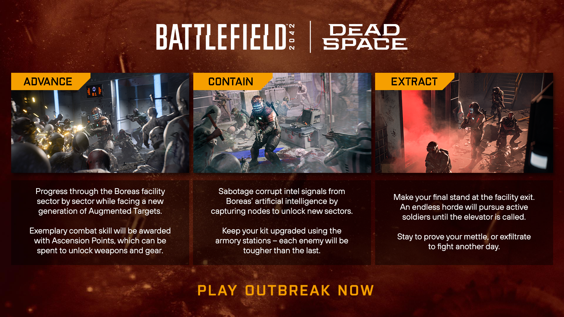 EXTRACT Make your final stand at the facility exit. An endless horde will pursue active soldiers until the elevator is called. Stay to prove your mettle, or exfiltrate to fight another day.