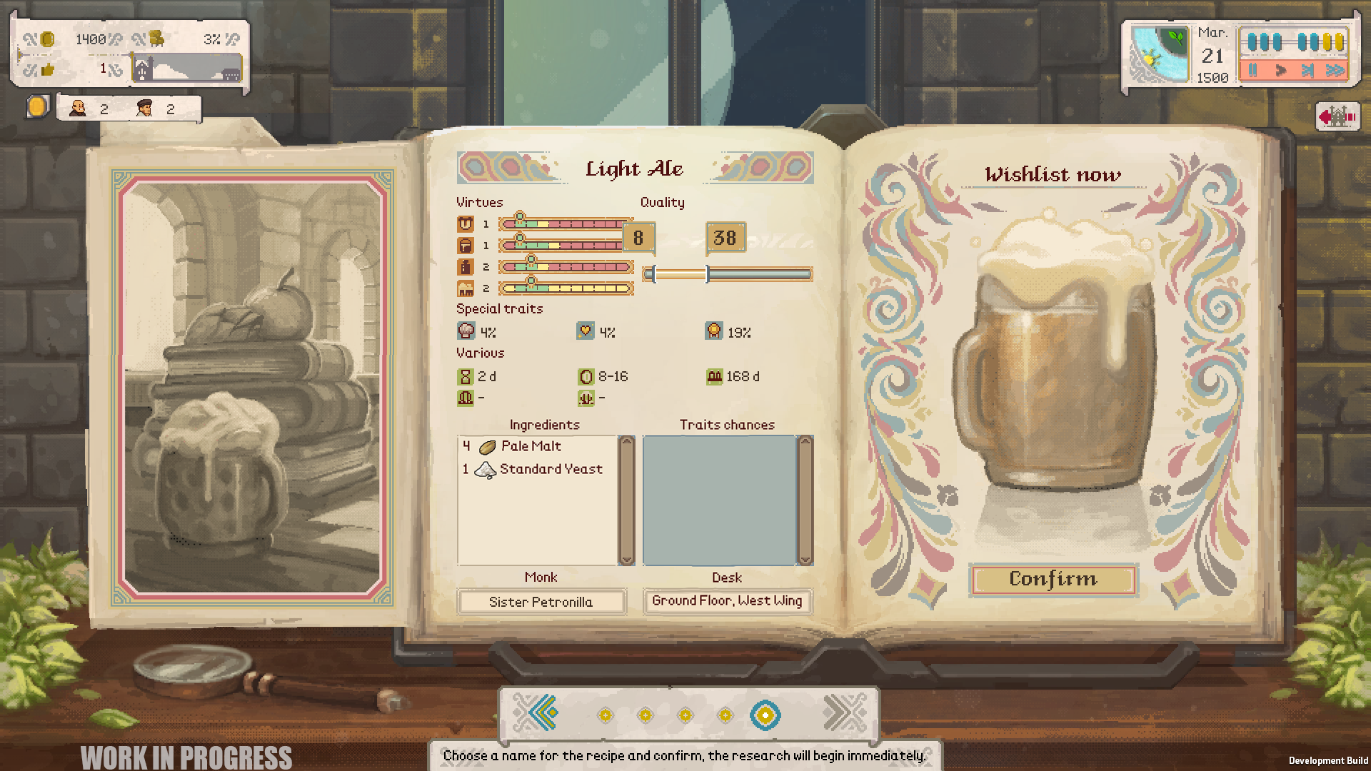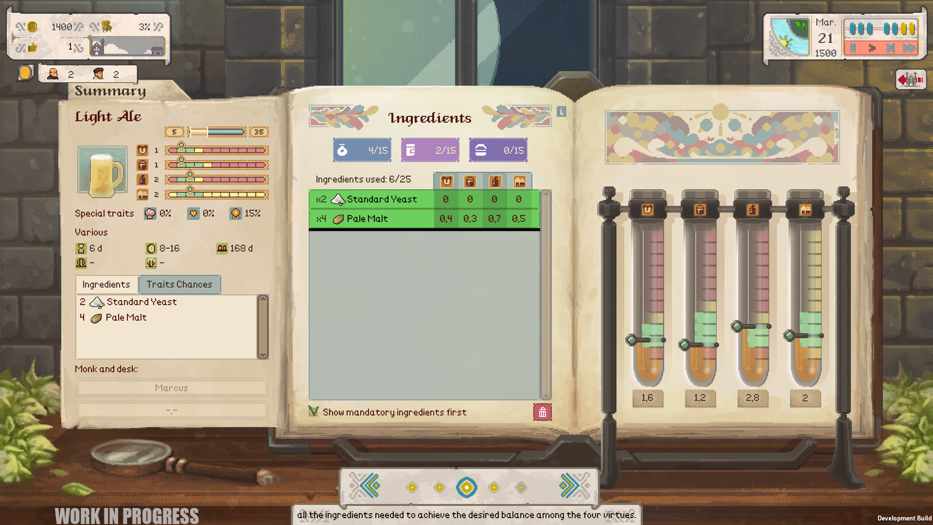 Congratulations, Your Maltiness! You are now on the brink of managing your own abbey, and it will be your responsibility to ensure that this monastery excels in beer brewing, both in quantity and quality.