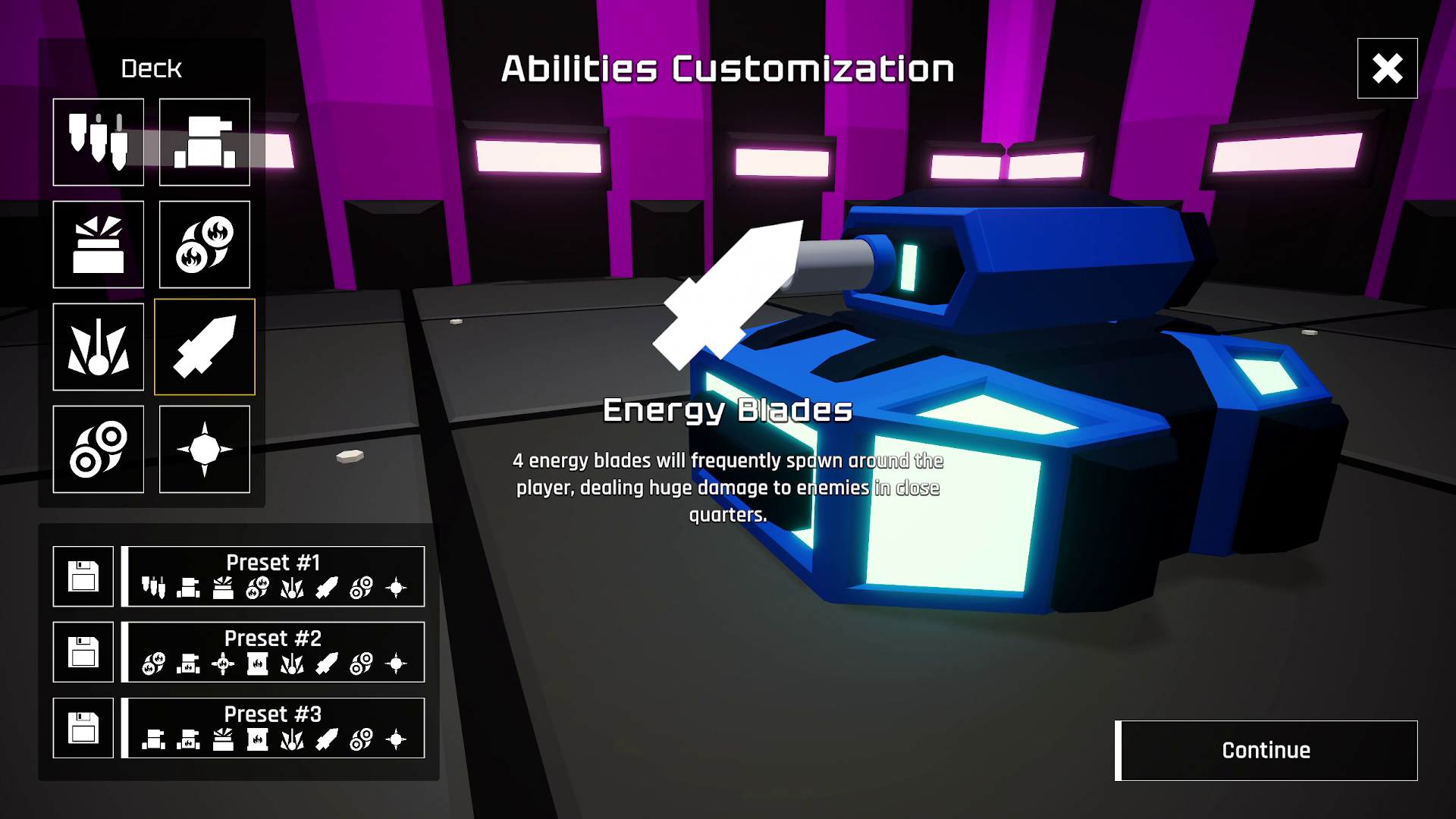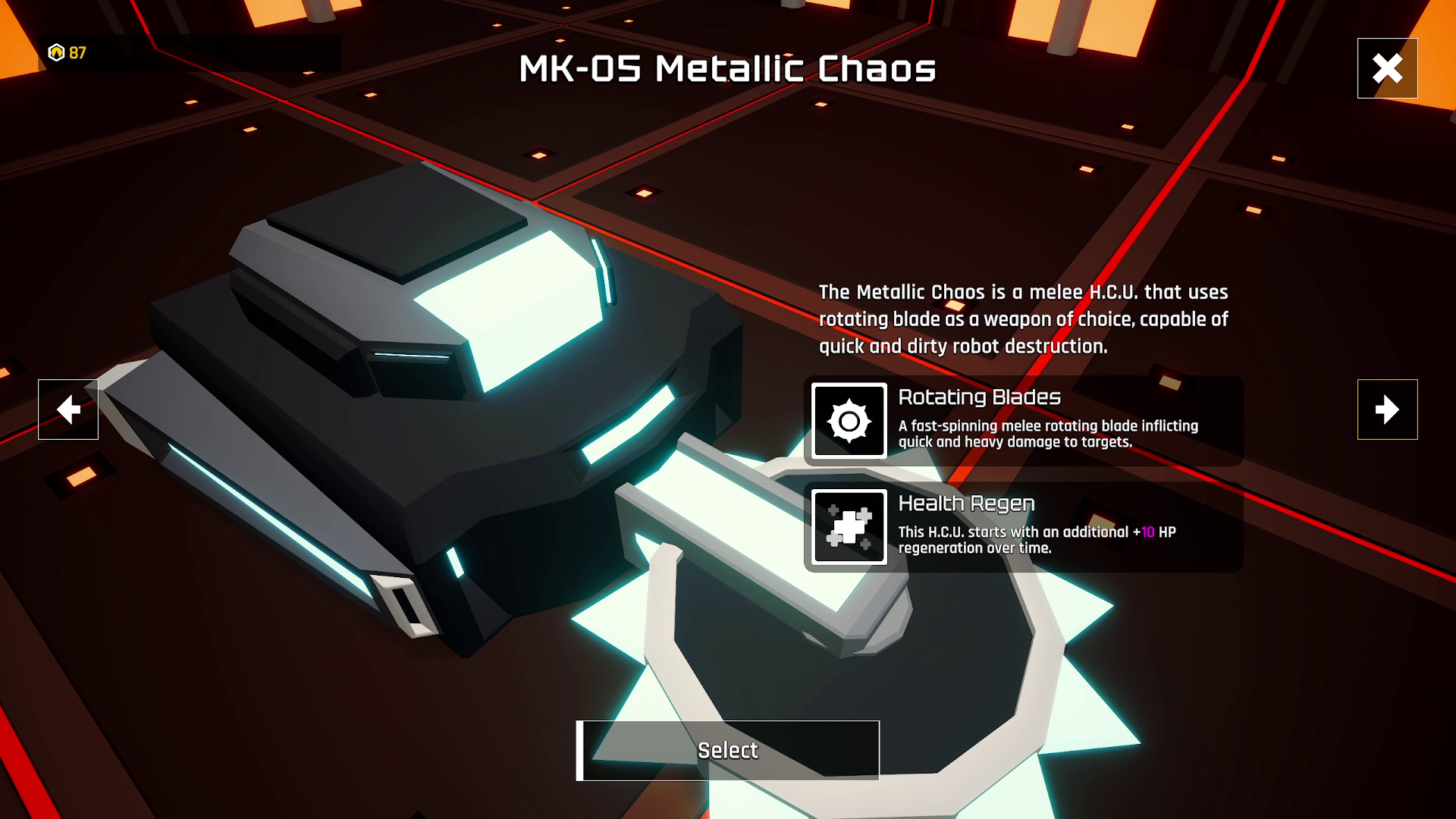Say hello to MK-05 Metallic Chaos and its powerful rotating blade to dominate your enemies in close quarters! This unit also comes with a passive HP regeneration boost when starting a run.