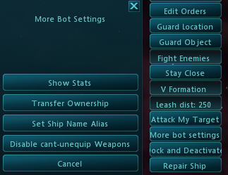 One of the major changes of the last few universes has been the ability to transfer Stations and Bots within the same account! This helps streamline the ability of a player to centralize most of their Station construction builds and supplies onto a single character. To utilize this new feature – select your bot/station and press “X” if the menu below the targeting box is not visible. For stations, Transfer Ownership will be on “X” menu. For bots, you must press More Bot Options and then press Transfer Ownership. You must have a character, on the same account, that you wish to transfer to, offline within the same galaxy for it to be a valid choice, provided the receiving character has sufficient skills and/or slots for the transfer.