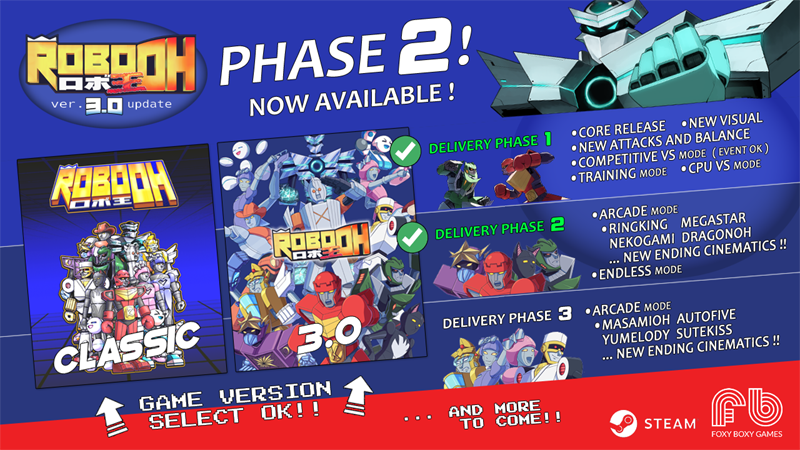 ● 1P ARCADE mode is now available for the following characters: RINGKING, MEGASTAR, NEKOGAMI, DRAGONOH● 1P ENDLESS mode is now available. If MAXCYBER becomes the opponent, it will now gain the energy and increased behavior of the boss version, instead of the player version