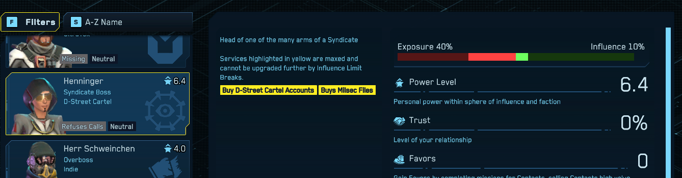 The current iteration of this mission is styled such that it is a great fit for your Street Docs, Nu-Vudu practitioners and drug runners, contacts who haven't been as present in the proc-gen circuit up to this point, giving a new way to get them Influence points.