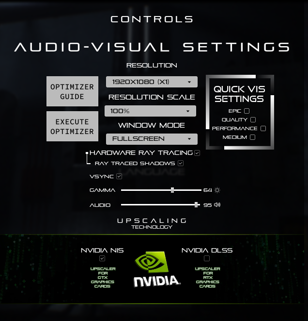Also since the Optimizer tool was created for mostly for fiddling with experimental features like DLSS Frame Generation or very specific graphical tweaks. It only made sense to add it first as the main visual settings tool, even though it is not as user friendly. This is why now the game has a quick visual settings box where you can just change from 4 graphical presets: EPIC,QUALITY,PERFORMANCE and MEDIUM, no writing anything, just pressing a button.