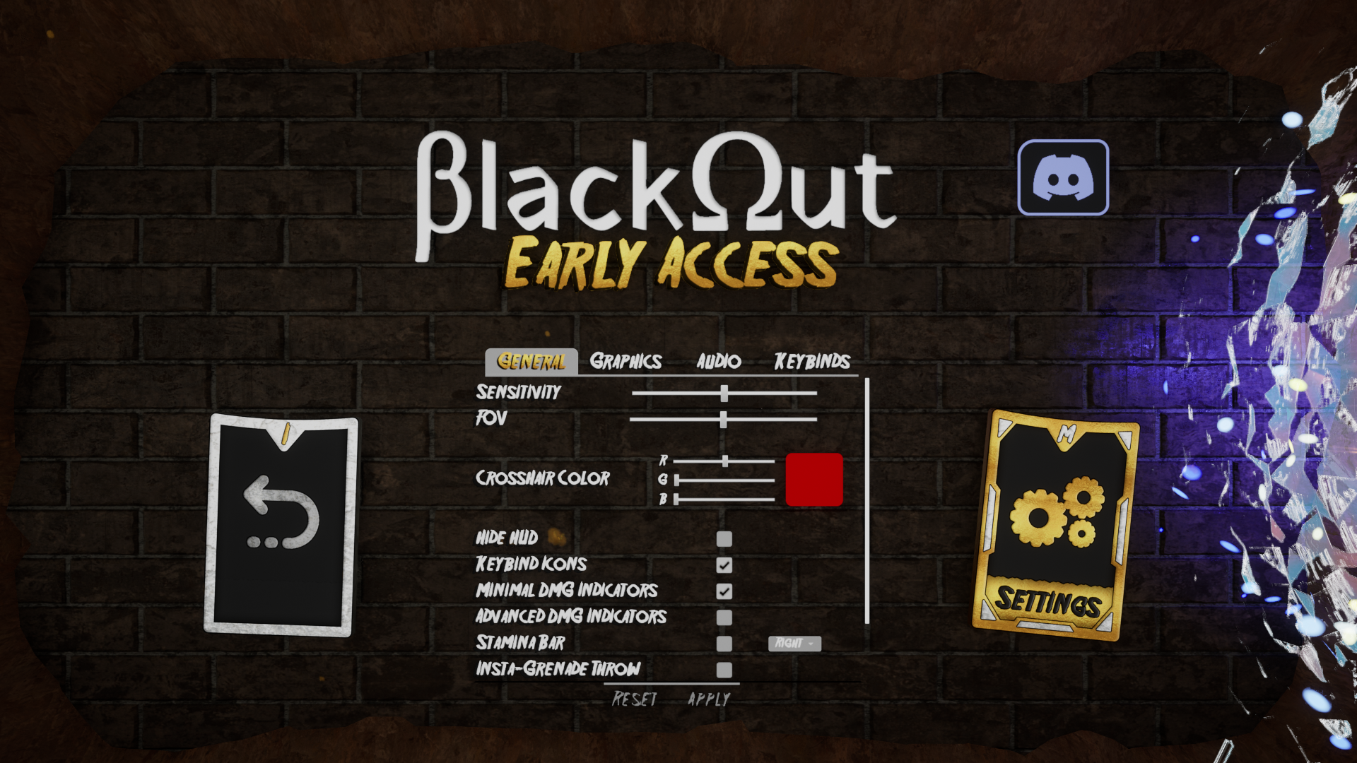 New Settings Menu including settings for Video, Audio, Keybinds, and General settings