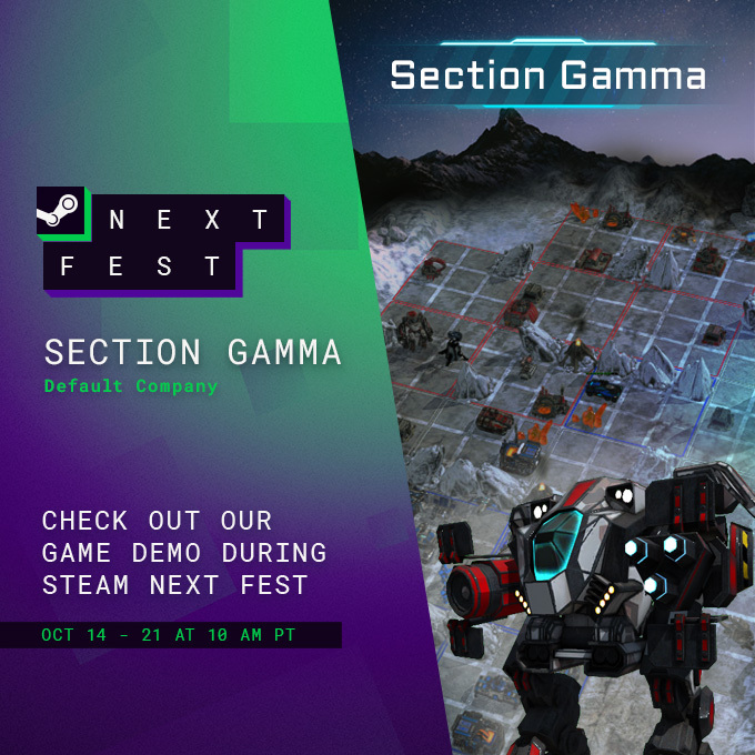 Hello Commander, We are happy to announce that we will be part of the upcoming Steam Next Fest. The event starts on October 14th and you will have the opportunity to play the demo of Section Gamma. During the event we will present the game via livestream and answer your questions. If you dare, you can also play against us in multiplayer. The exact stream times will be announced soon. We look forward to your feedback and wish you good luck in Section Gamma!