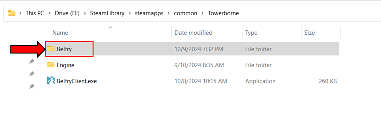 Now that you’re in the Towerborne folder, double click on the Belfry folder.