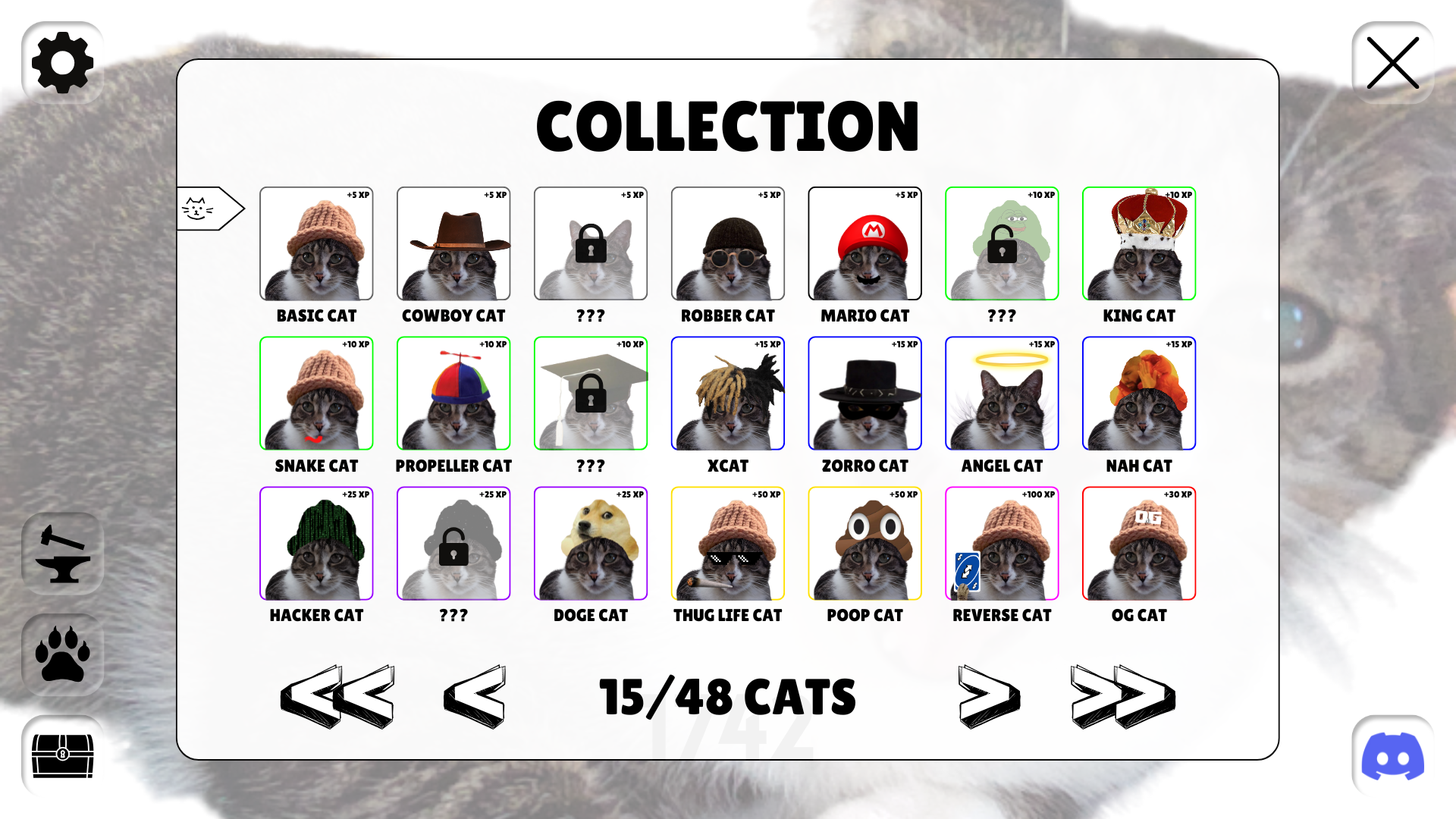 4. MAJOR UPDATE at the end of the year: Prepare for the biggest update in "Catwifhat" history! The introduction of collections, achievements, and a leveling system will make the game even more exciting and full of challenges!