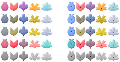 Since the flowers are the most important elements of the Primrows game board, our goal from the beginning was to come up with a set of flowers whose colors and shapes would remain distinct for as wide a range of vision accessibility needs as possible.