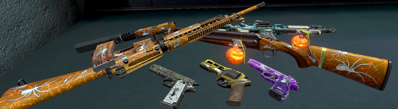 Some popular weapons got their holiday looks too! 🎃 They also unlock while destroying pumpkins in arenas except one-holiday grenade is already available for everyone!