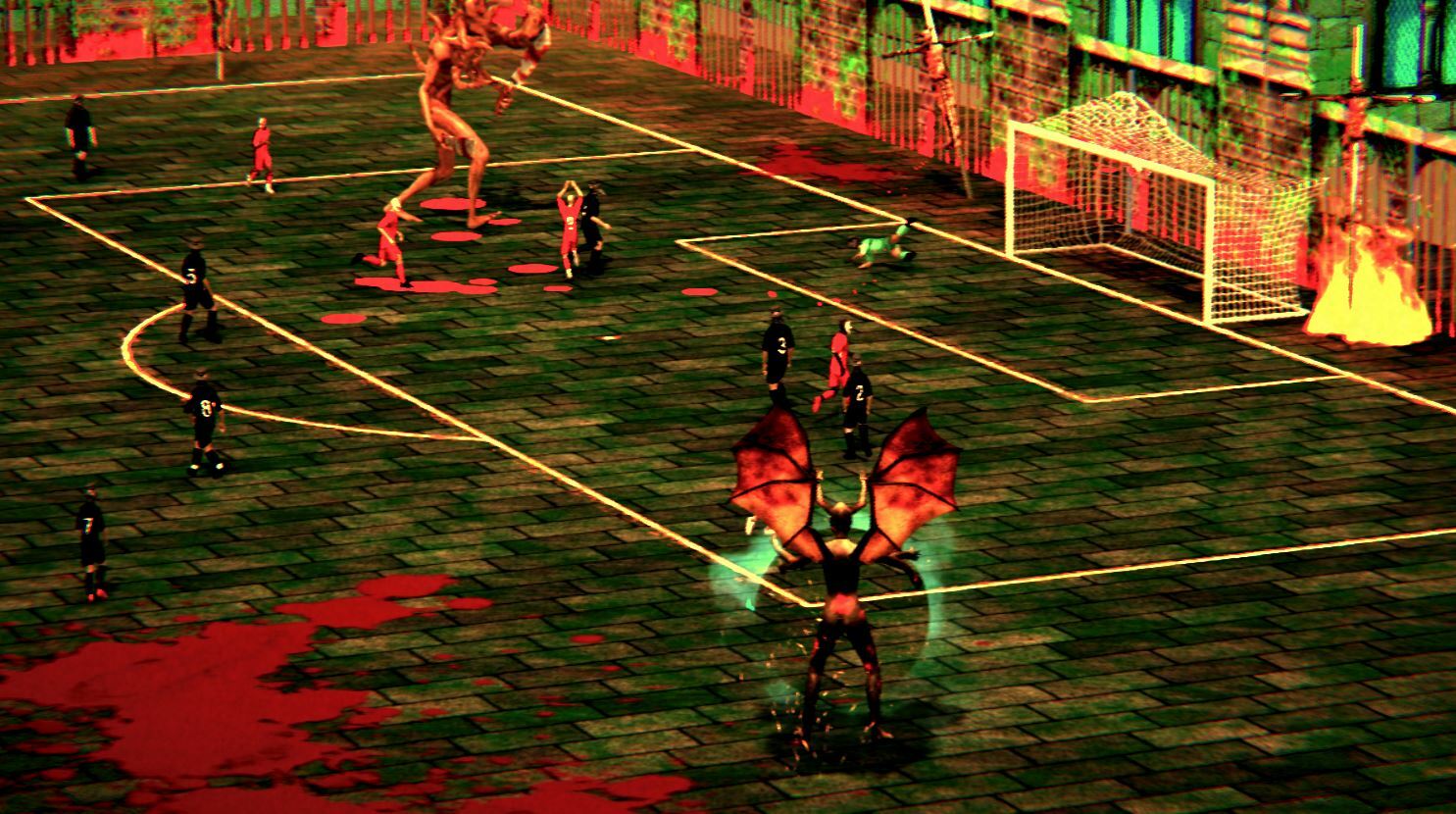 Fear FA 98 is an arcade title that aims to create fast-paced and dynamic matches. Quickly choose your team, equip it with the necessary weapons and demonic summons to defeat your opponents. During the match, the environment works against you, with monsters and traps appearing to make the game more interesting. You can also use your weapons to drain the opposing team's strength, with options like axes, rusty scissors, syringes, or even assault rifles. Additionally, you can summon ancient demons to assist you in battling the enemy forces!