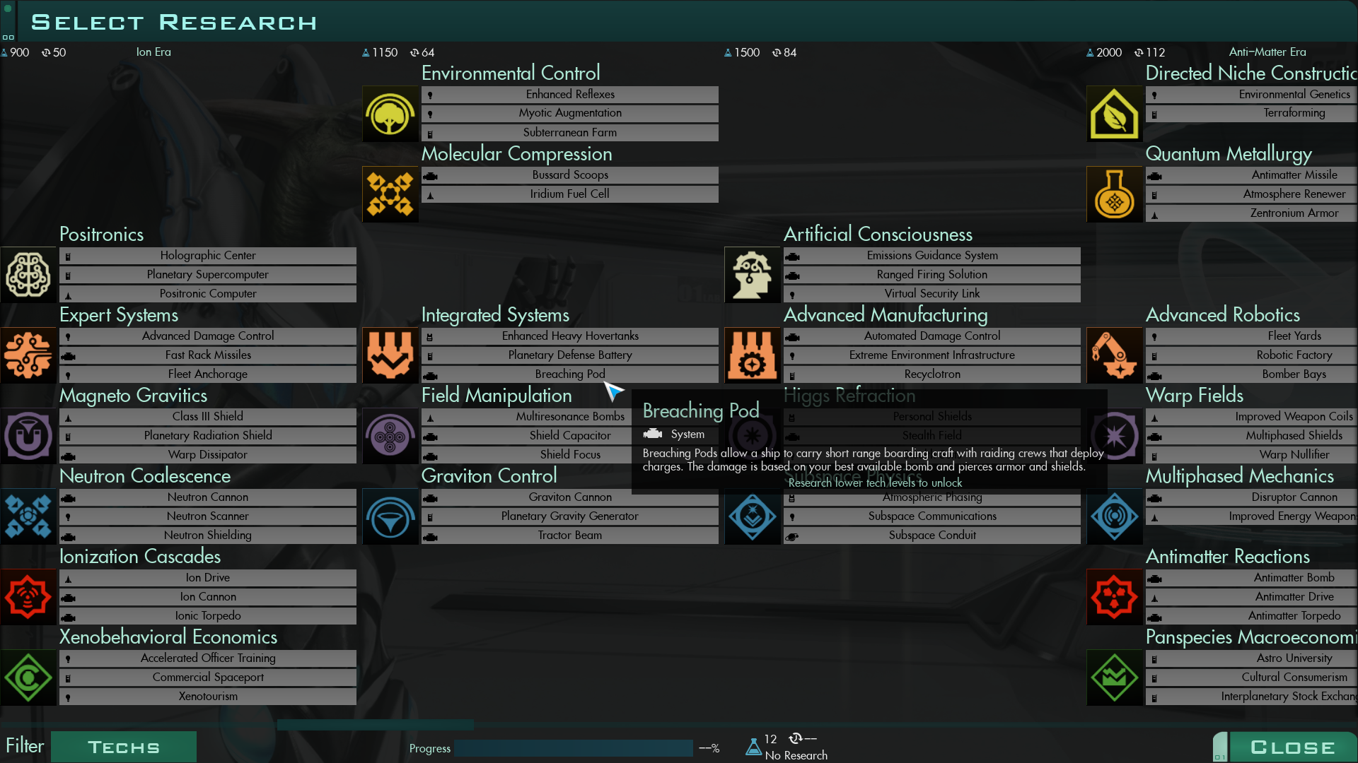 Breaching pods fall as a type of strikecraft and deploy raiding crews that deal damage that penetrates shield and armor with breaching charges that do damage equivalent to your best available bomb with ground combat bonuses applied. They are slow and able to be intercepted by point defense. But they provide a new tool for ground combat focused species.