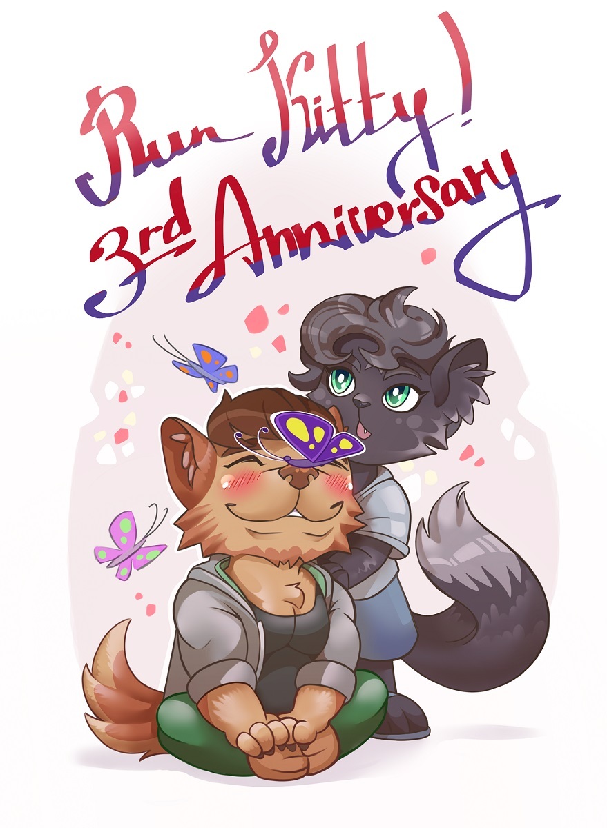 Hello, guys! Today is our “Run, Kitty!” game's three-year anniversary! Hooray, hooray, hooray! To celebrate, we've released a congratulatory art with Richard and Simon. Look how cute they are!⭐