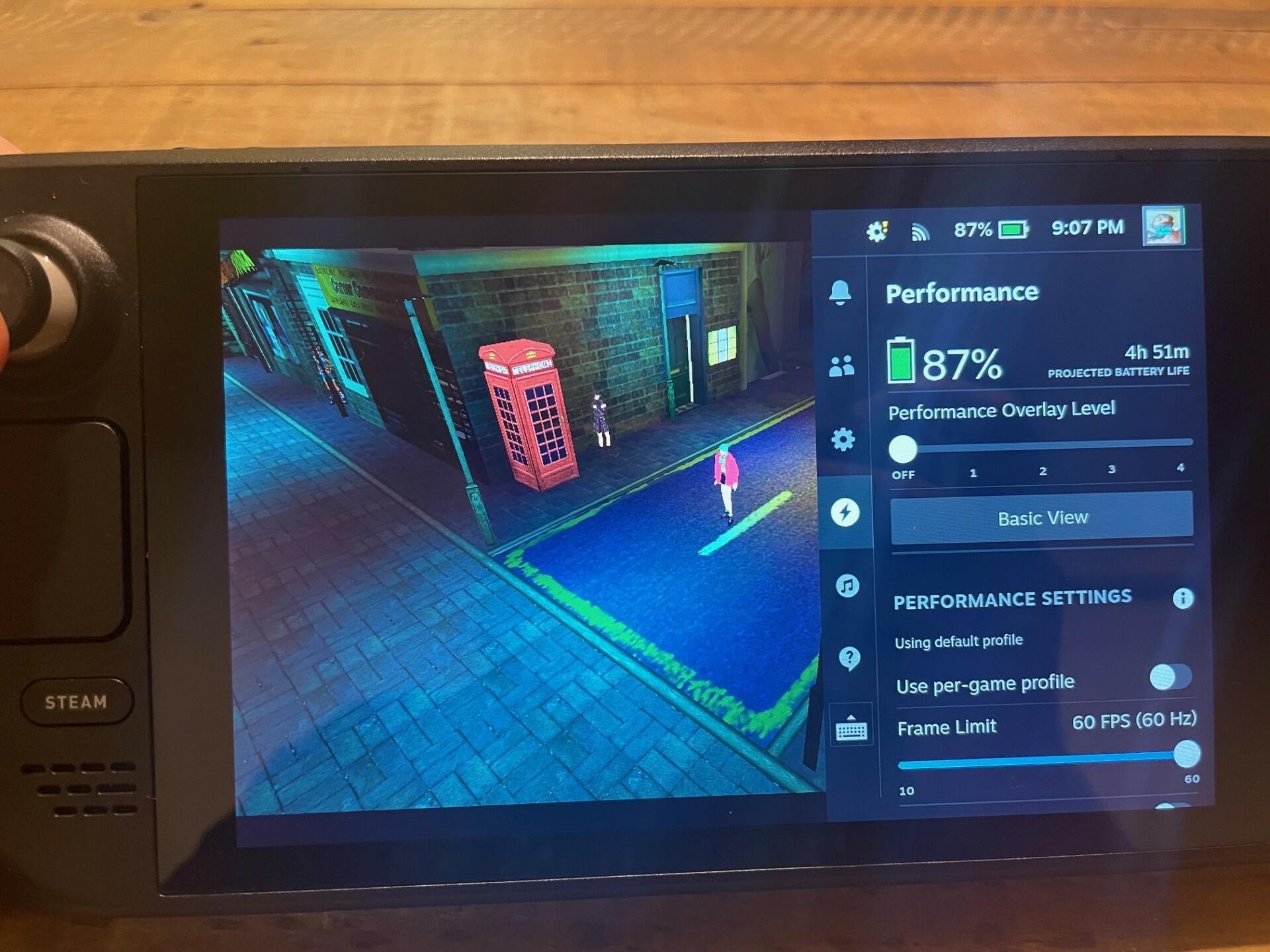 Battery life is looking good to us as well. The combat areas can be a bit more demanding but you should get several hours on the Deck when playing the game.