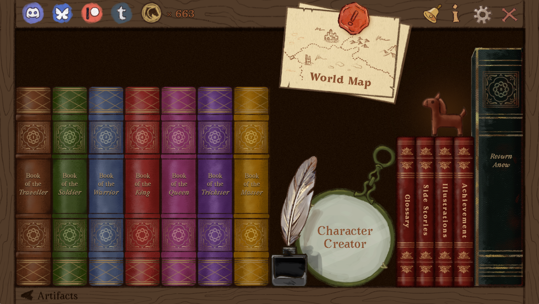 We’ve added some new buttons to the main menu that we think will be useful going forward. First, in the top right, you’ll see a bell icon. This is what we’re going to use for in-game notifications, which will usually entail information about new updates, future releases, major news, etc. Essentially, it will help you stay informed about the game’s current status. When you notice a little red dot on the bell, that means there’s something new to look at!