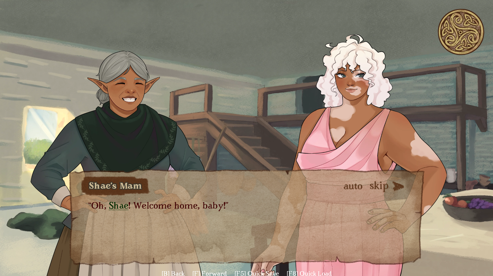 Shae’s route has a new sprite! Specifically, a sprite for Shae’s Mam – Sláine. We originally used one of our generic sprites for this character when we launched, because the beauty before us wasn’t ready at the time, but now she’s here! Hurray! Get a load of that smile.