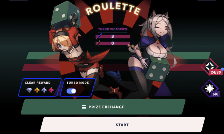 Turbo Roulette mode is a high risk mode with a much faster roulette gameplay. Everyone including the player is beefed up with more powerful attack cards, meaning creating quick powerful play is the key to victory.