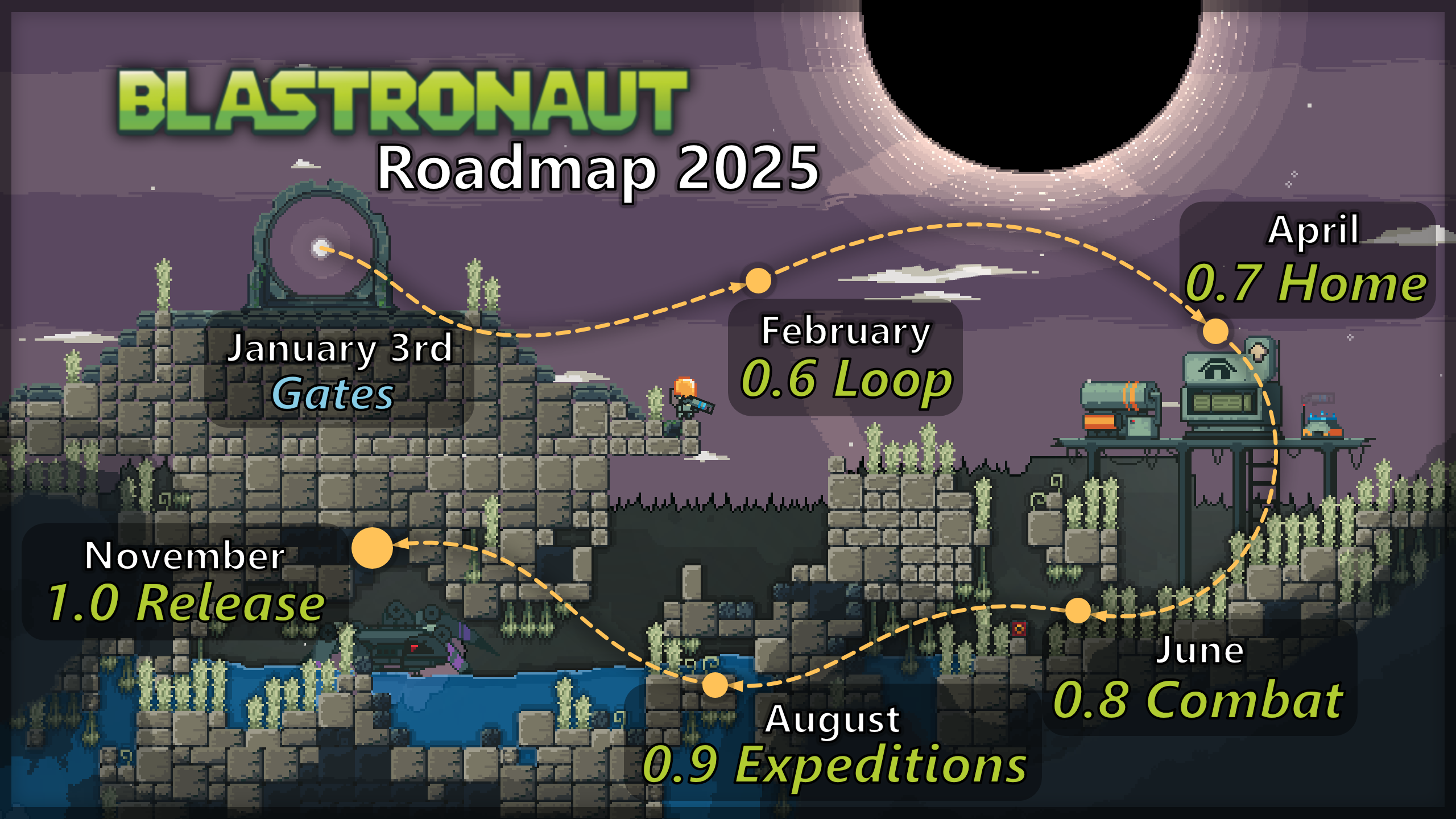 After quite a lengthy pause, I will continue working on Blastronaut through 2025. I apologise to everyone who was disappointed with the recent lack of updates, and I will try to make it up this year.