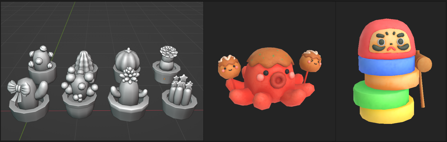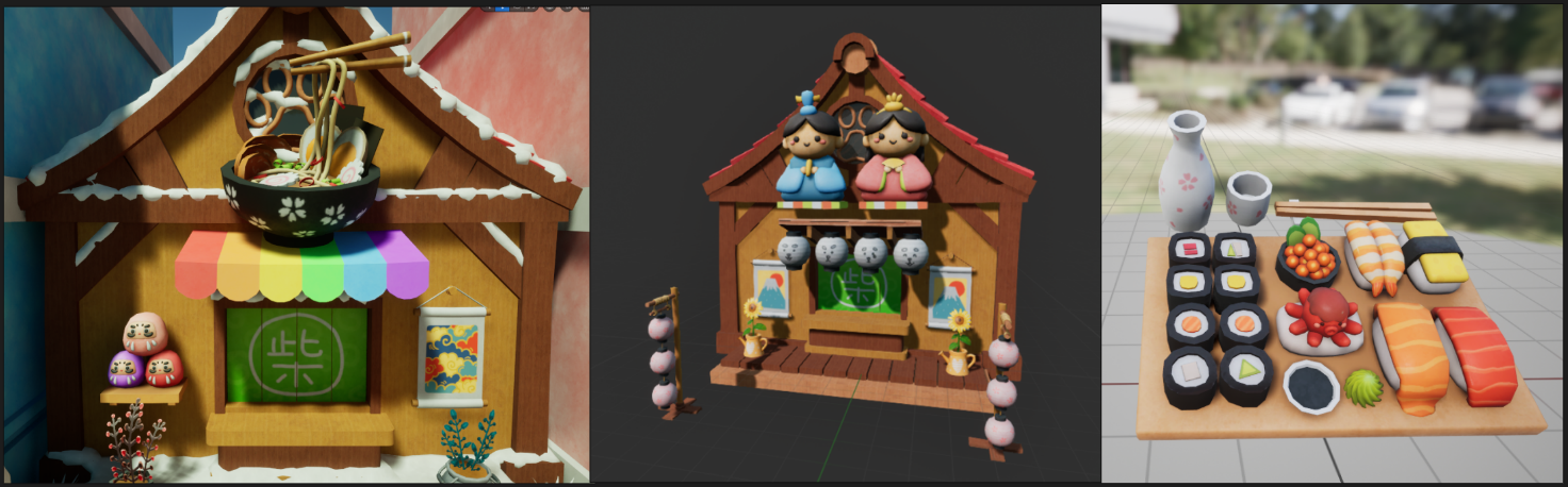 December was an explosive month for 3D art productivity! All the shop exterior decorations on the to-do list were completed. The best thing is that I created a lot of models that I personally adore. I hope that when the players play the game in the future, they'll fall in love with all the cute decorations and go crazy buying them to adorn your own shop.