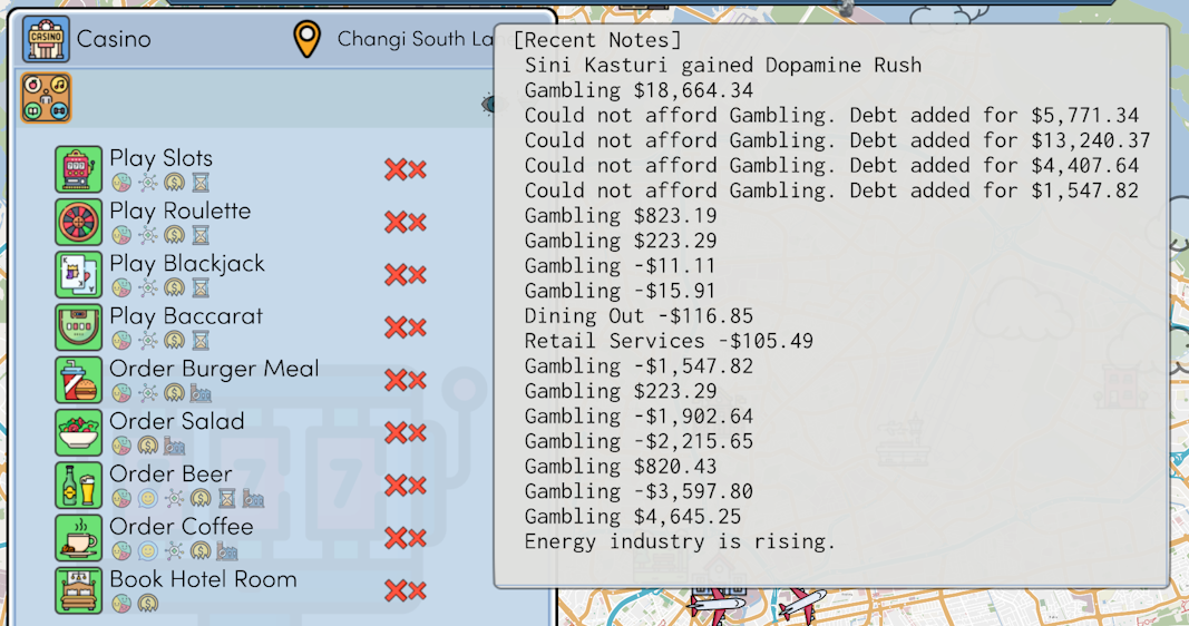 Visit the new Casino site where you can play various games. You might gain the Dopamine Rush status effect or you might financially ruin yourself so proceed carefully...