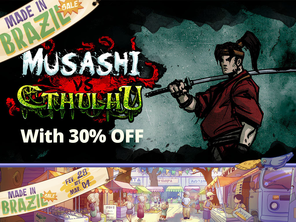 From today until March 4th, Musashi vs Cthulhu is available at a special 30% discount during Steamโs Made in Brazil Sale! ๐ฎ๐ง๐ท
