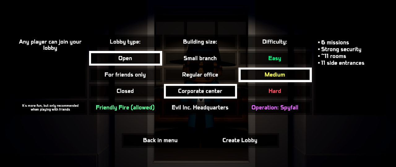 4) Building security: In each room, the number of guards will change depending on the difficulty, which will greatly affect the gameplay. This will help beginners get used to it easier, and those who already know the game well - to test themselves.