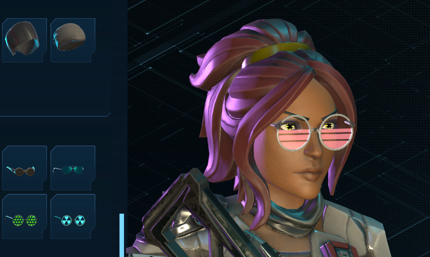 The new circular glasses were practically screaming (can you hear them?) for new cool lens options, so we've added 2 new lens types with Update #228 - a fully filled glowing lens and a stylish low-bar slatted lens option. We may add a few more lenses here but for the moment, the 3 we've got provide some cool options, fades and looks.