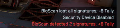 If the BioScan Field is disabled before the end of the Turn (Line Crawler, Hacking, etc) the 6 Tally are removed from the Sec Tally correctly (this was bugged) and a new combat log is added that makes it clear that the Biosignatures have been lost and that Tally got -6.