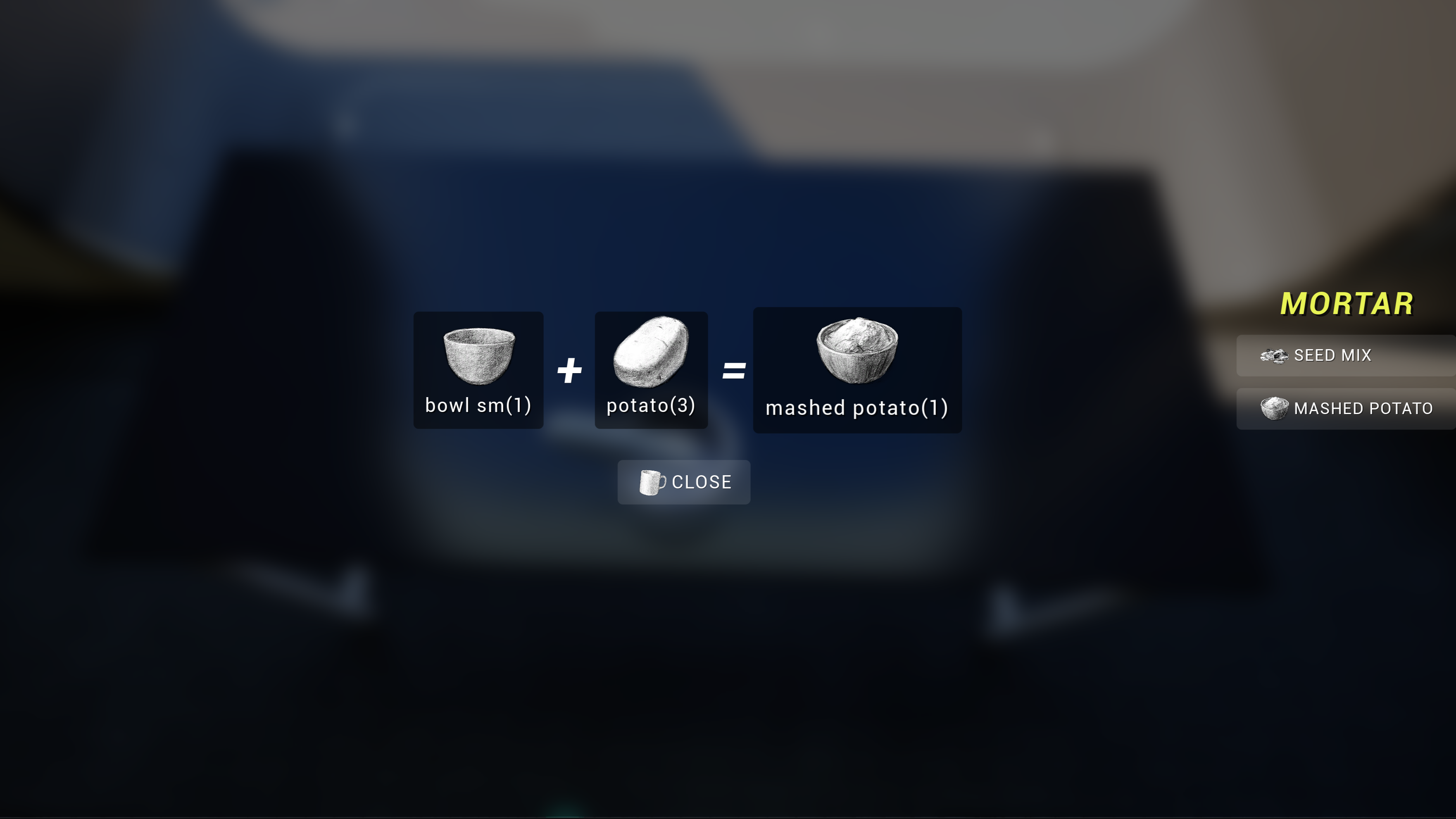 The very first thing to craft will be some food for you and your dear friends, the rats. After choosing a dish, you will need to use the pestle firmly in the mortar with your mouse to prepare the desired food.