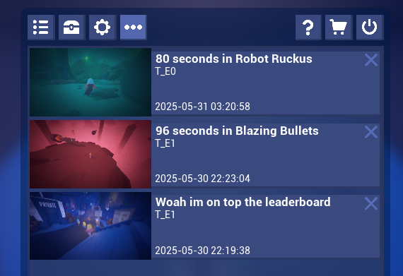 ⚠️ There's a lot of work left to do on replays. For example, replays don't work well yet in most minigames. Next update we'll hopefully have patched every minigame to fix this. Until then, Blazing Bullets and Condo replays seem to work quite flawlessly!