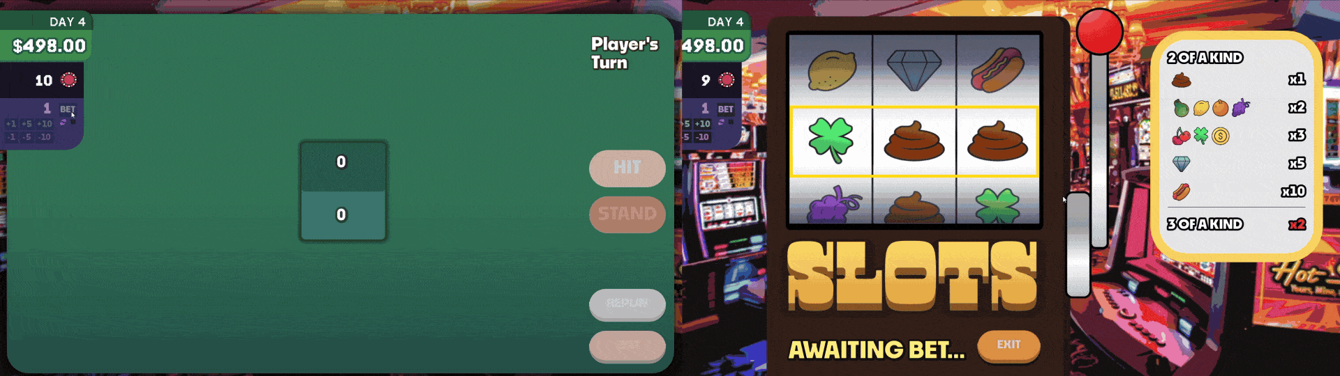 We heard you - you want to GAMBLE! Soon, your biggest financial dreams will be possible. The Casino features two games, Blackjack and Slots. Surely this is a fine way to spend your hard earned cash.
