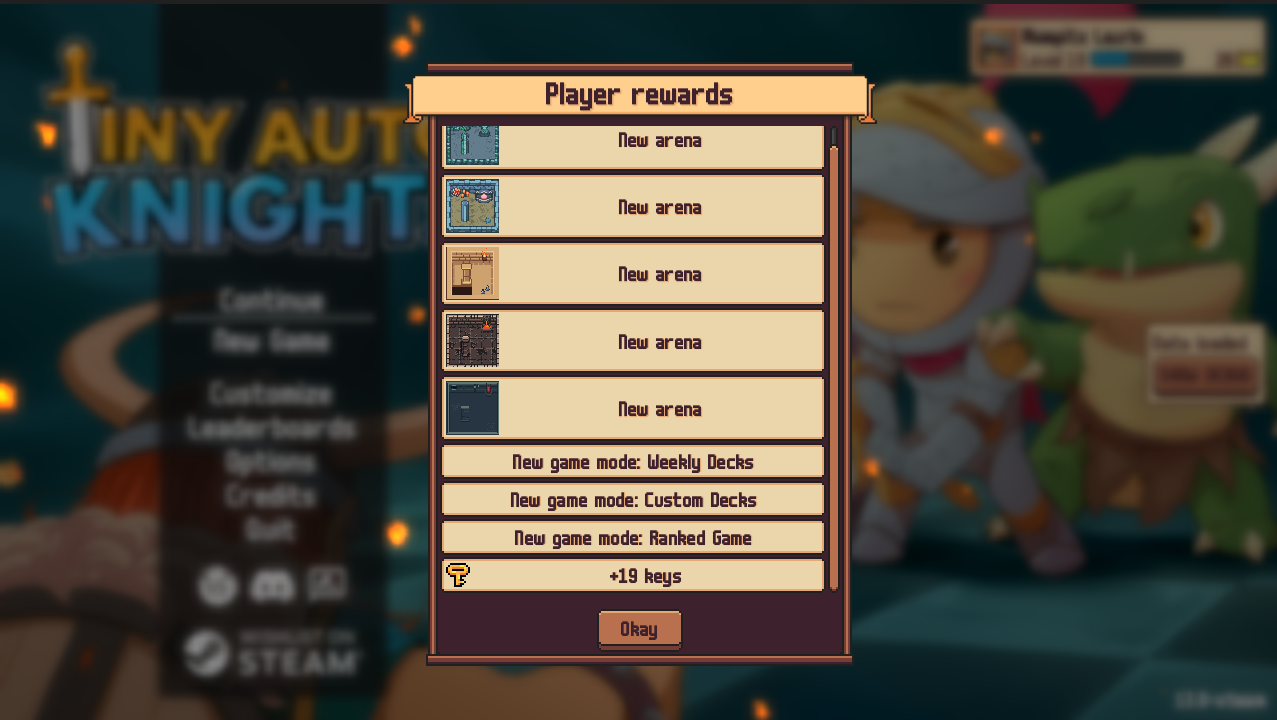 Added a list showing new player rewards which were unlocked when returning to main menu