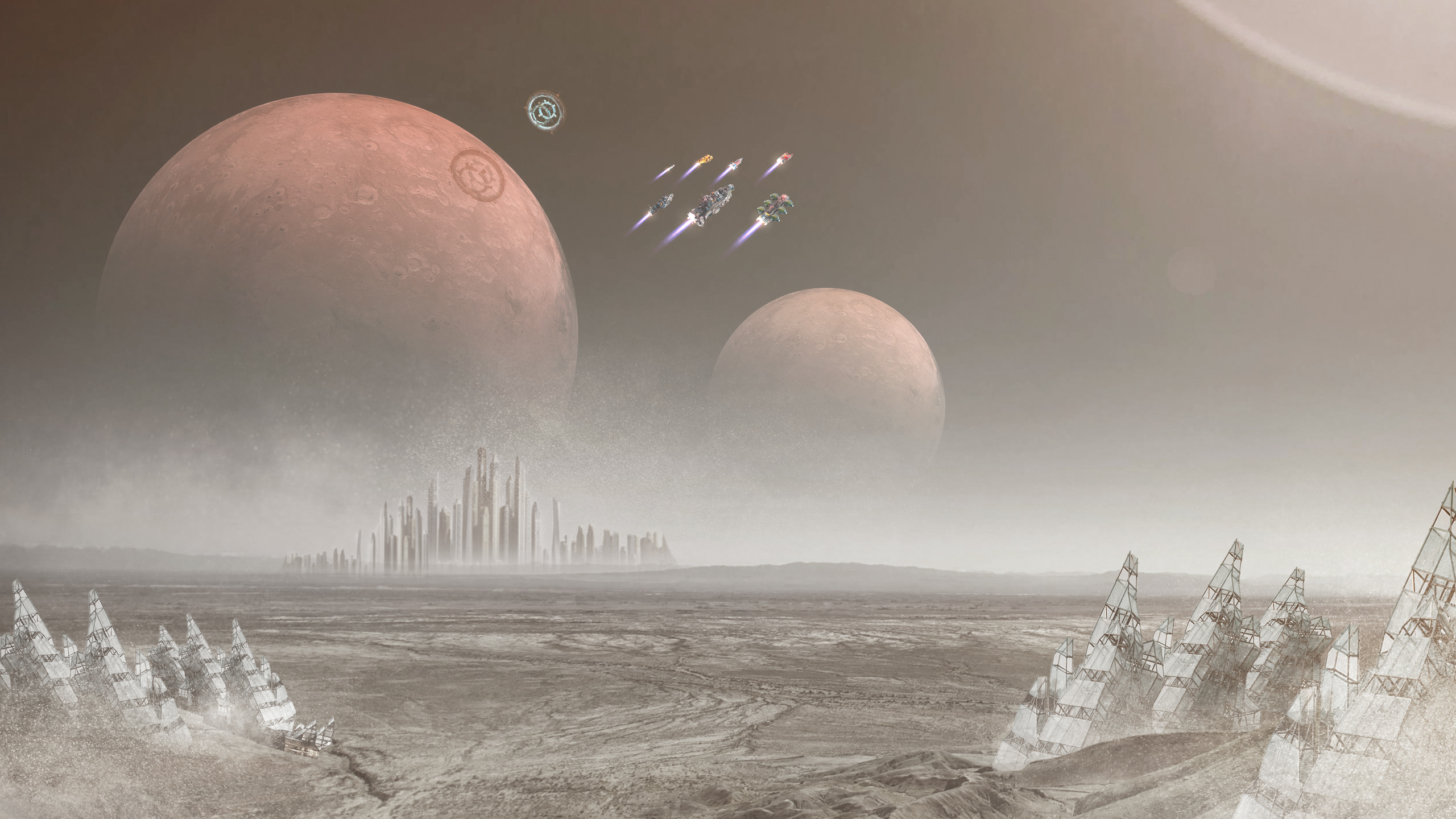 Fleet movement. Ships move around, avoid obstacles, dock in planetary orbits, can be deployed in “cinematic” mode (zoomed in, detailed) or normal.