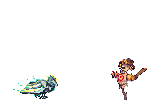 With swift wings of steel and an electrifying temper, Minokawa wields Fire and Wind Aether. Its Sidekick-Type allows Minokawa to remain attacking multiple times each turn, pressuring down enemies through sheer speed. Its Force-Type converts those strikes into critical hits, enabling Minokawa, or other allies, to strike with excellent precision. Finally, its Dodge-Type offers defensive capabilities, protecting any ally from harm by quickly dodging subsequent incoming hits, reading their patterns.