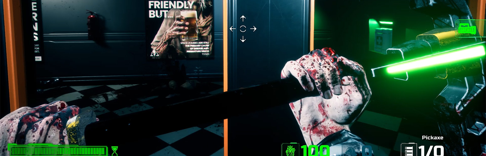 Killing Space Zombies isn't exactly a clean job. So from now on, whenever you strike a zombie with a pickaxe, corpse, or any other organic matter, or whenever you perform a finishing move, your Miner's hands will be covered in blood.