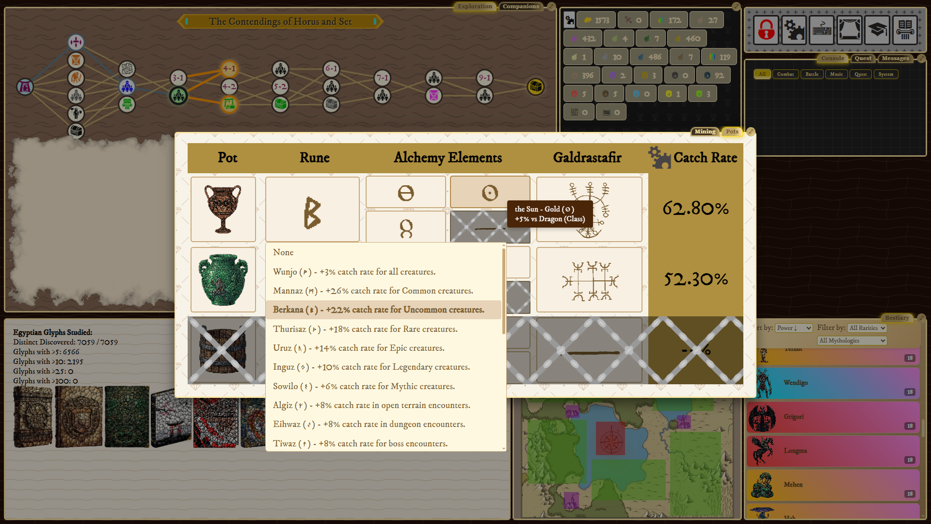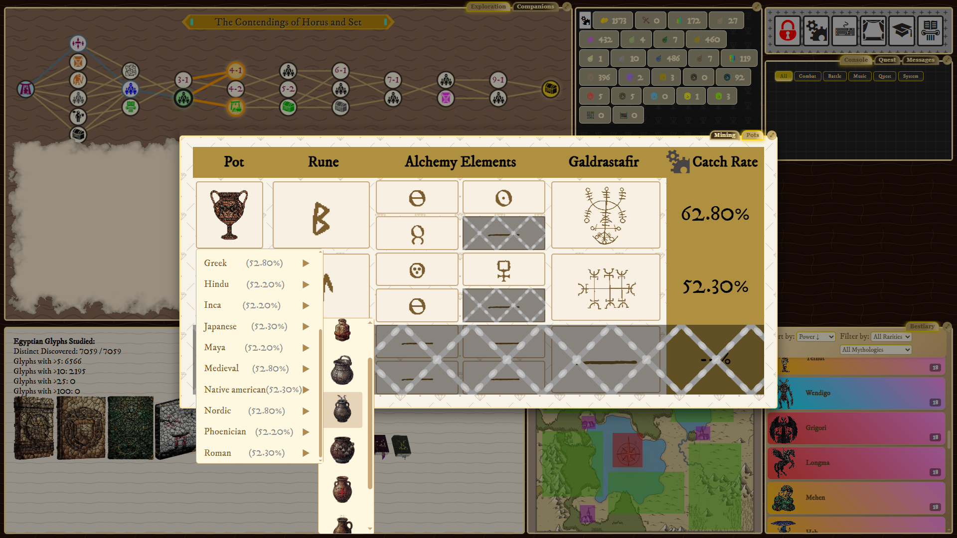 [/carousel]Capture System Implemented: The full pot system has been fully implemented, where you can select a pot from a mythology and select runes, alchemy elements and galdrastafir to refine the catch rate or the rewards.