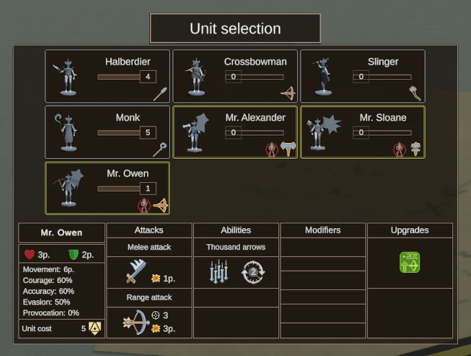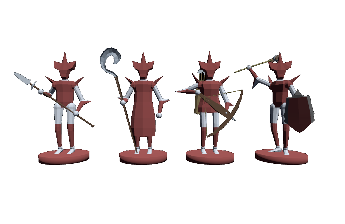 From left to right: Halberdier, Monk, Crossbowman, and Slinger.