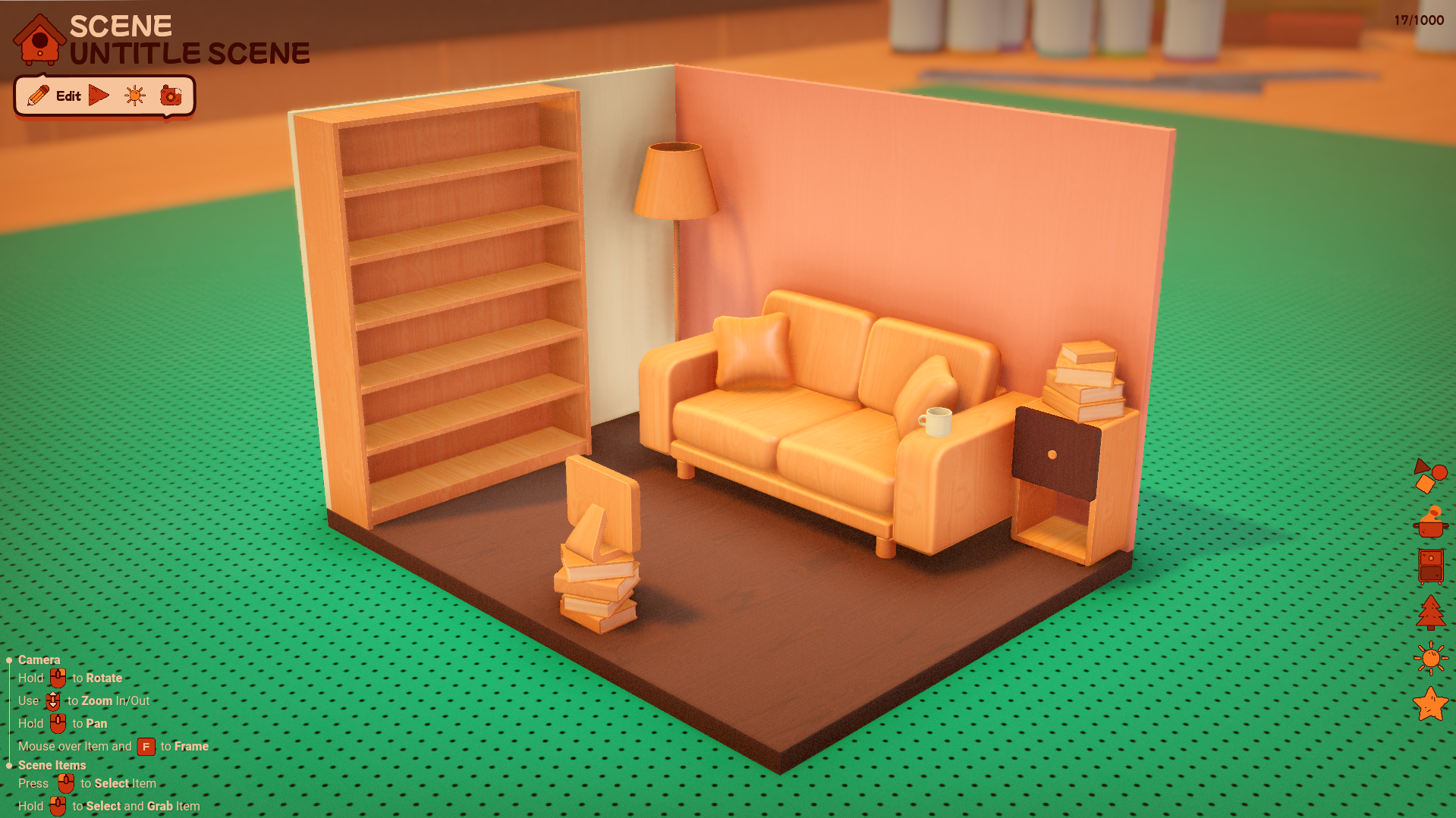 • New scene come with predefined little room now, to prevent new scene to just been empty, specially for new users with no experience, later options to decide if you start with empty scene is going to be added.
