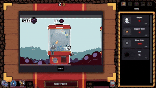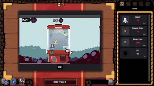 So the game is called "Gamblers Table", but until now we haven't had many features that related to that topic. To change that, we have added capsule machines to the game! Of course, these don't cost any real money, but instead every time that you flip a coin in Gamblers Table and it lands on SKULL (heads) ... you get a skull token! You can use these skull tokens to operate the capsule machines, which in turn gives you hats for your helpers.