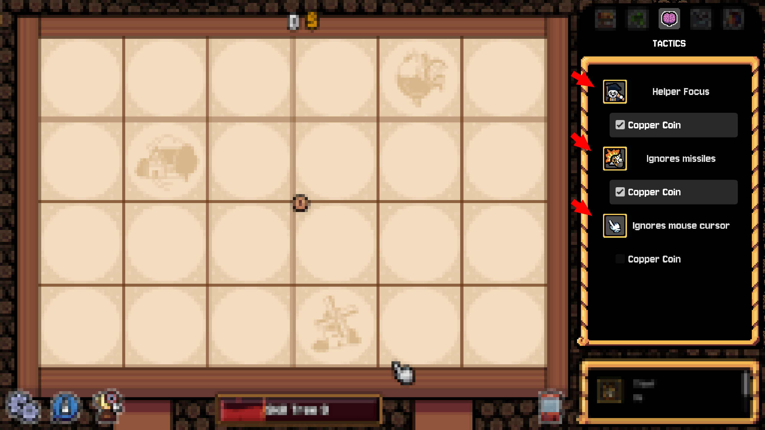 In the release version there will be a lot of features that can interact with each other. But what if you don't want that? What if you want something to specifically NOT interact so it can be triggered way more often by something else? "Helper Focus" was our first step into that direction, but we are introducing way more fine-granular control over other aspects of the game aswell. These let you decided, whether e.g shockwaves should trigger copper coins or whether your cursor can or can not flip gold coins, ... and so on.
