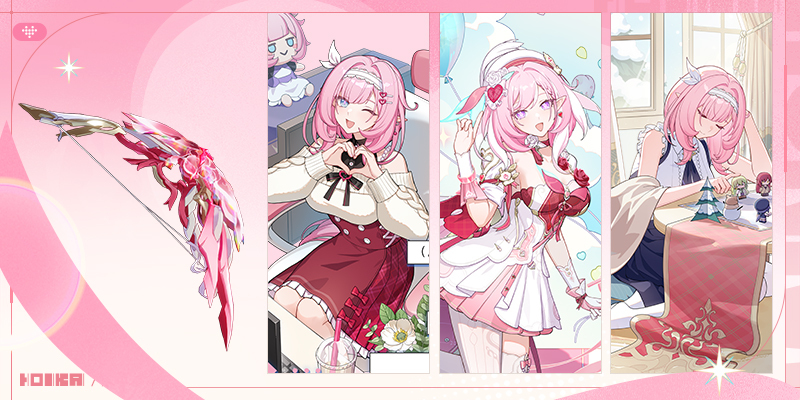 "Hi♪ Love Elf♥" is an SD-type Ice DMG dealer who uses a bow. Elysia is protected by Astral Ring Specialization: Grail of Infinitude, and she can guide her little messengers or scatter Love Blossoms for a dazzling offensive. By locking onto her flower cluster with her Ultimate, she can deploy the Ever-Blooming Garden across the battlefield to complement her attacks. During Stellar Outburst, Elysia can deploy Love's Expanse around herself to provide buffs for her team. When Love's Expanse reaches its maximum level, or when she fires the maximum number of arrows with her charged Ultimate, she can gather light to perform a radiant Link Ultimate against enemies on the field.