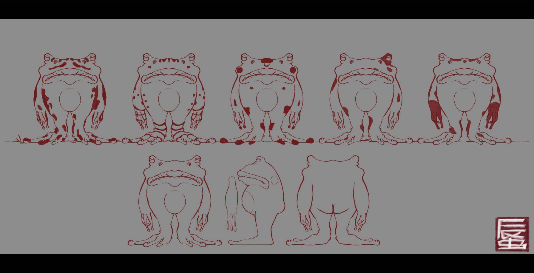 Early concept design of the frog-manActually, KasaSaburo is a special hybrid creature between a toad and a frog!