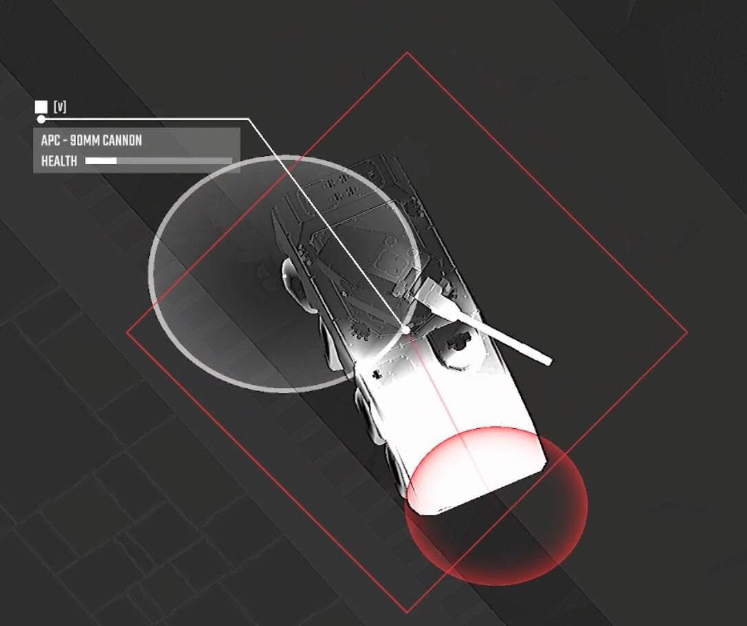 Damaged vehicle with mobility kill. Crews can repair but must stay put for a while.