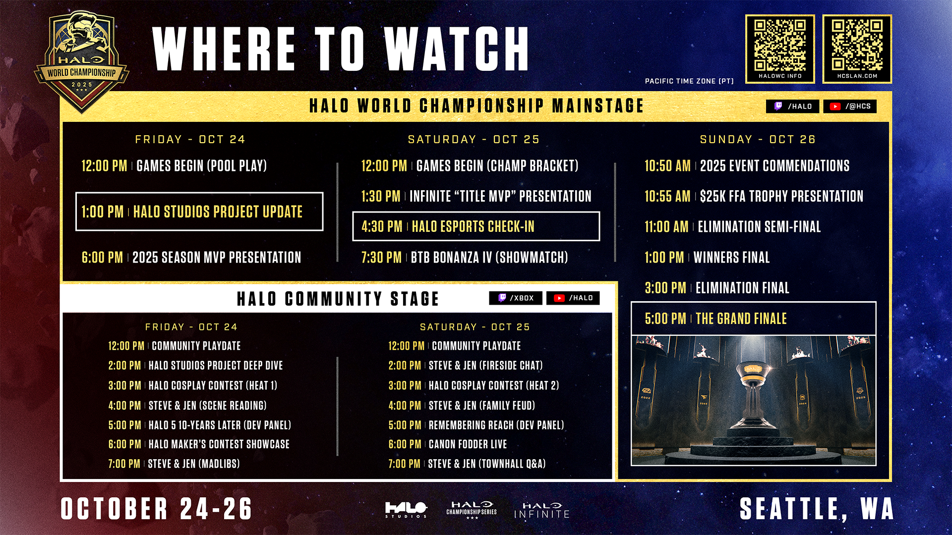 The biggest Halo event of the year returns to Seattle for the Halo World Championship 2025! Join fans from around the globe to witness electrifying plays, a thunderous crowd, and a celebration of Halo like no other.