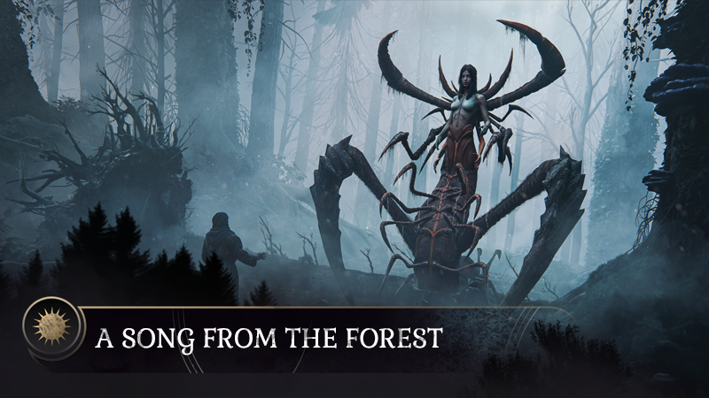And now you stand in the darkness, the first tendrils of the Shroud weaving around your toes. The song calls to you from the forest, and in the distance you see the pale figure of a woman slip between the trees...