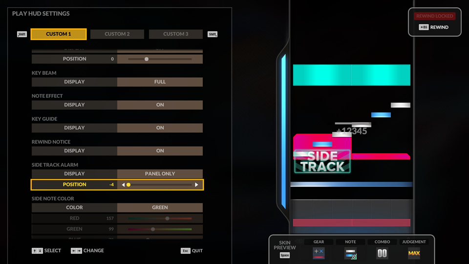 In the “POSITION” section, you can change the location where the side track panel is displayed.
