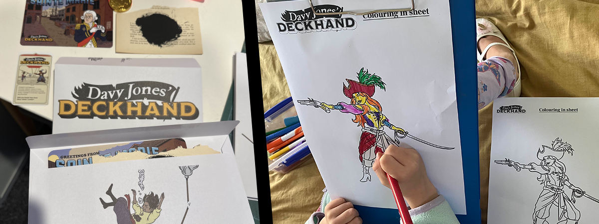 "With a narrative, mechanical and artistic design dripping over from the likes of Monkey Island, Captain Pugwash and Muppet Treasure Island; Davy Jones' Deckhand has you engaging in a deckbuilding swashbuckling adventure to duel pirates, knaves and ne'er-do-wells in counter-based combat."